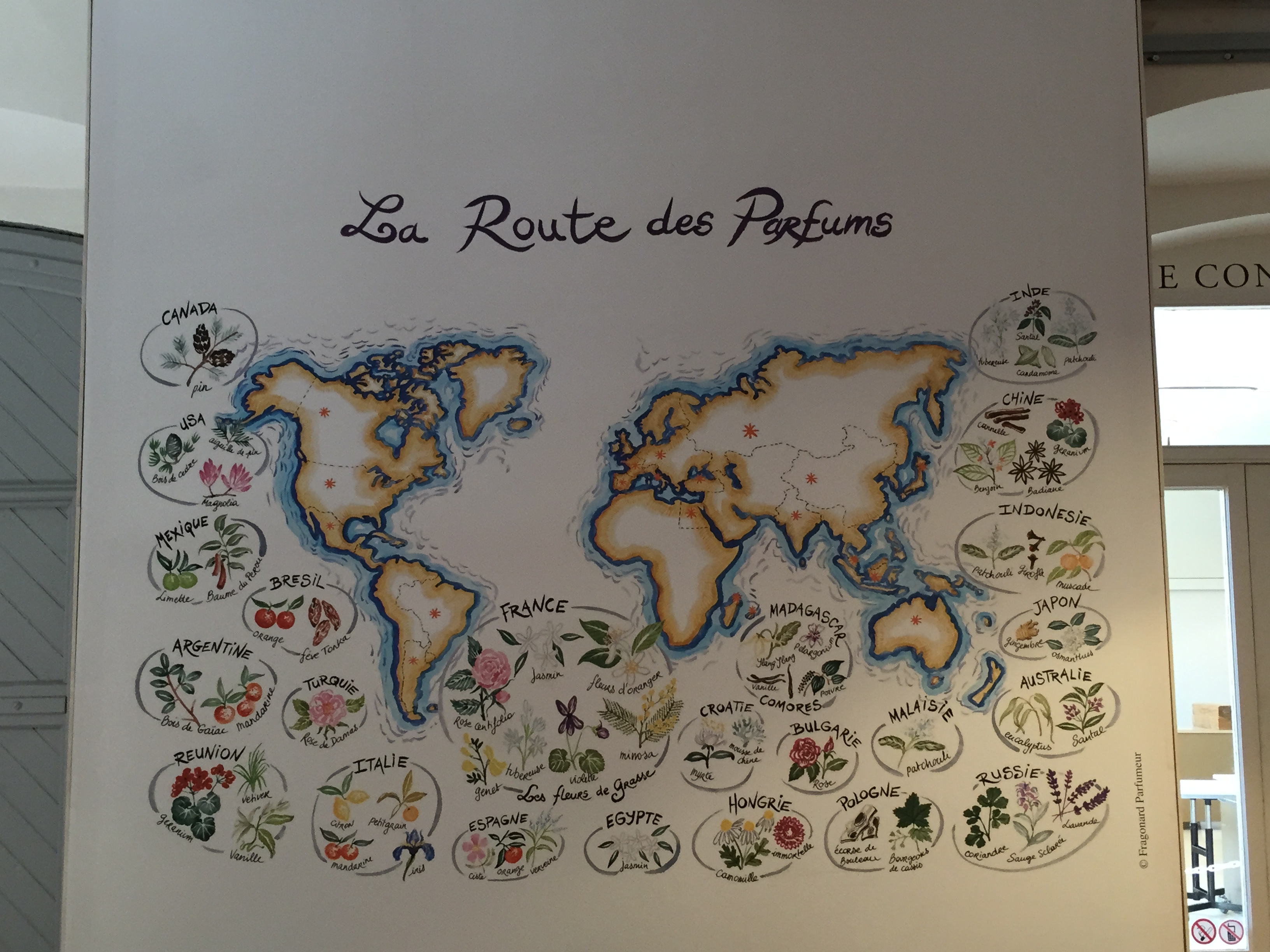 Grasse, where we visited the Fragonard Parfurm Factory, I learned some fascinating facts about parfum. I learned those who create parfum are called Perfumers or “Noses”. There are currently only 50 true perfumers in the world right now. They must attend 3 years of schooling, followed by 7 years of apprenticeship. They are able identify over 2500 scents, from memory. They can only spend about 2-3 hours a day smelling scents and to protect their noses, they do not smoke or drink.